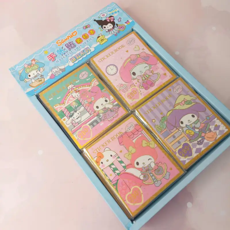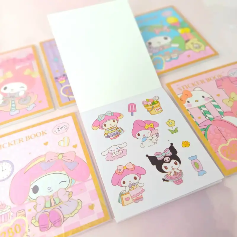 دفترچه استیکری سانریو در طرحهای کرومی، ملودی، سینامورال و … شامل 12 صفحه. این دفترچه در ابعاد 9*8 سانتیمتر است و در هر صفحه آن 10 استیکر وجود دارد.