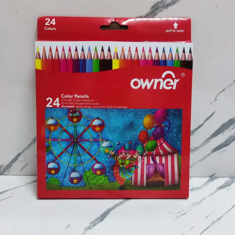 مداد رنگی اونر 24 رنگ جعبه مقوایی دارای 24 عدد مداد رنگی پر رنگ و با کیفیت با سطح مقطع شش ضلعی