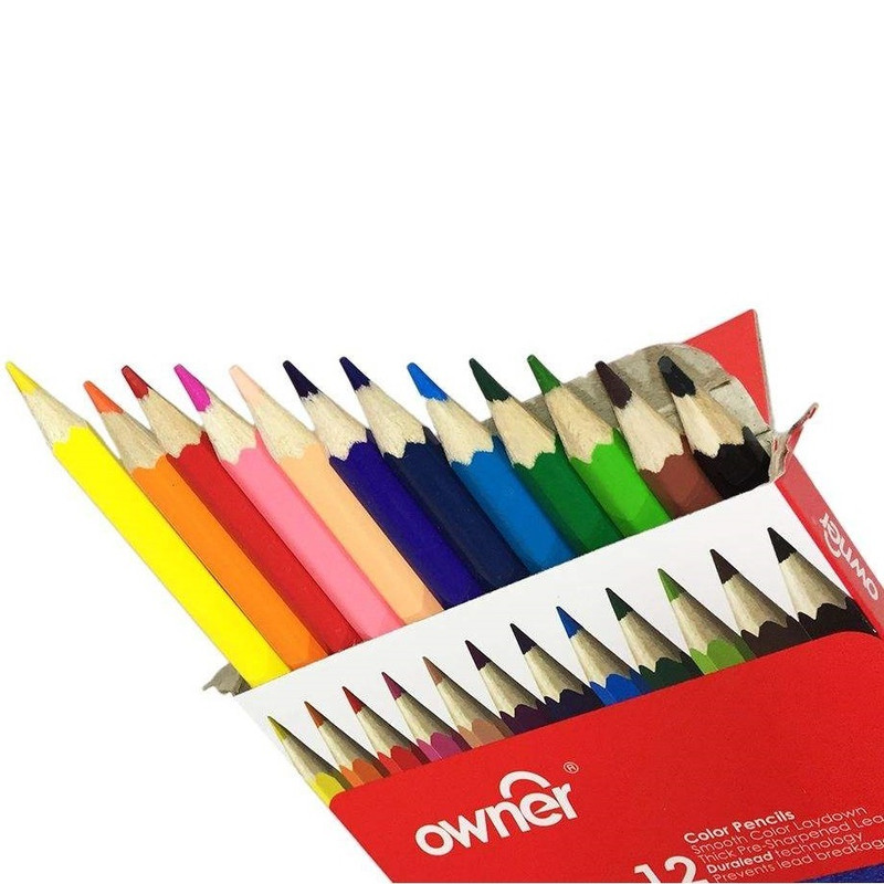 مداد رنگی 12 رنگ اونر Owner جعبه مقوایی، دارای بدنه از جنس چوب طبیعی و سطح مقطع شش ضلعی